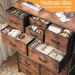 - Durable and Heavy-Duty Design: The fabric dresser is made of sturdy steel frame and thick solid wooden top, this tall dressers for bedroom offers stable support and ensures years of use. The “double X” support bar is designed on the back to provide strong stability and bearing capacity for the large dresser. Non-woven fabric drawers are easy to clean, open and close smoothly.