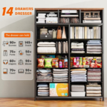 - Transform Chaos into Order: The space of the large dresser for bedroom is sensibly divided so you can organize well and find what you need quickly, every time. Spacious capacity with 14 deep drawers help you sort items by type, also space-saving organization.