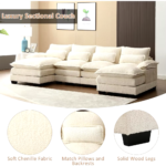 - Comfortable Sectional Couch: The U shaped sectional sofa features upholstered 2-layer seat cushions with high-resiliency foam to provide a soft and cozy feel, and each seat is equipped with match pillows and cushions, so whether you’re sitting down and relaxing or lying down and taking a nap, this sofa will provide you with an unbelievably comfortable experience.