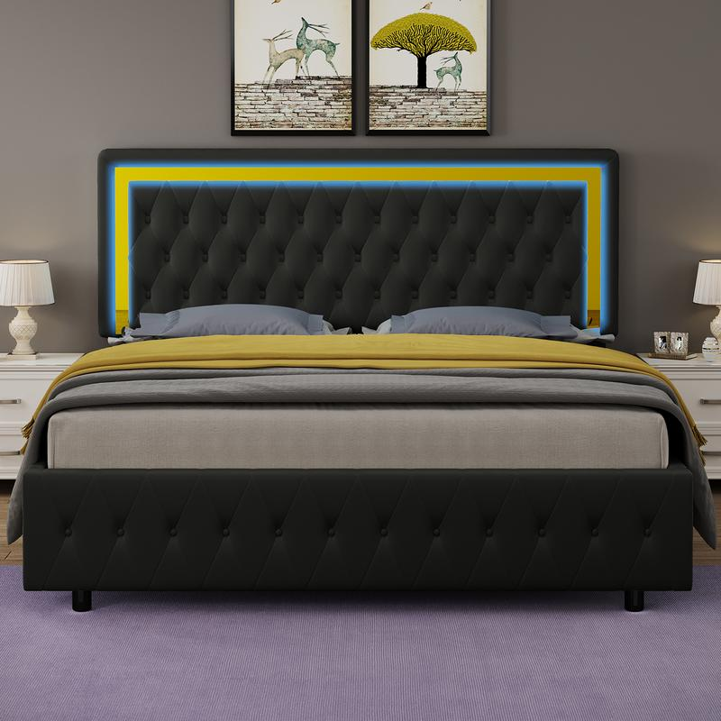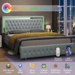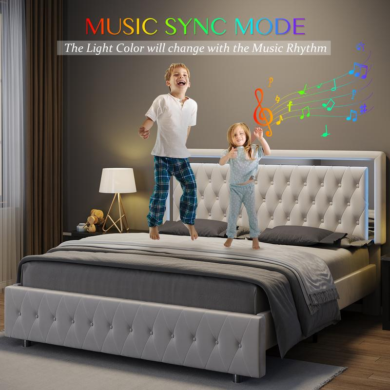 - Smarter LED Bed Frame: Freely adjust over 60005 colors, brightness, mode, timing fuction via APP or remote. Lights flash in various music modes, helding party in your bedroom.