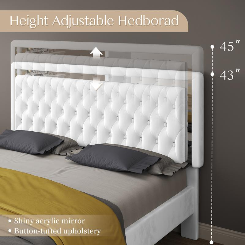 - Height Adjustable Headboard : The bed frame offers headboard height range of 43-45 inches, accommodating mattresses of various thicknesses.