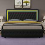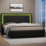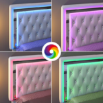- Sleek bed frame with led lights: Headboard with RGB LED light creates an inviting ambiance, while the mirror-like acrylic decoration adds sophistication.