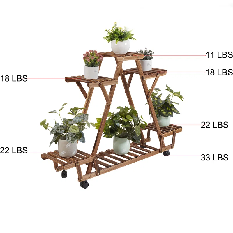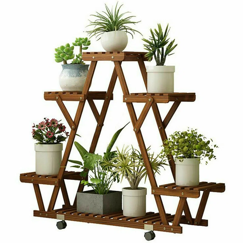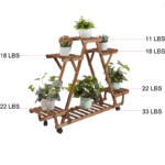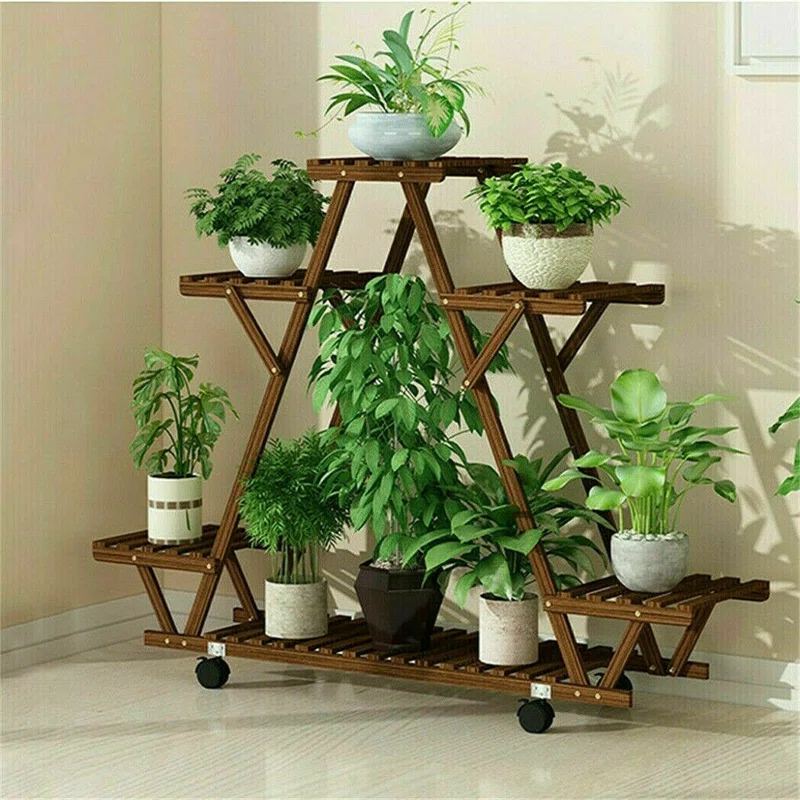 This Nicholes is made of solid carbonized pinewood, a natural material with no harmful substances. The triangular shape not only increased its weight capacity but it can made each plant pot enjoy the sunshine. Multi-tier it can hold at least 6 potted plants. A great addition to the garden, balcony, yard, and flower shops, as well as a nice gift for moms, and girlfriends. This wood flower stands with high and low designs and evenly slats with hollow designs, good for drainage and ventilation, which is a benefit for plants’ growth. We added wheels at the bottom, so you can easily remove them for outdoor or indoors, garden, patio, greenhouse, etc.