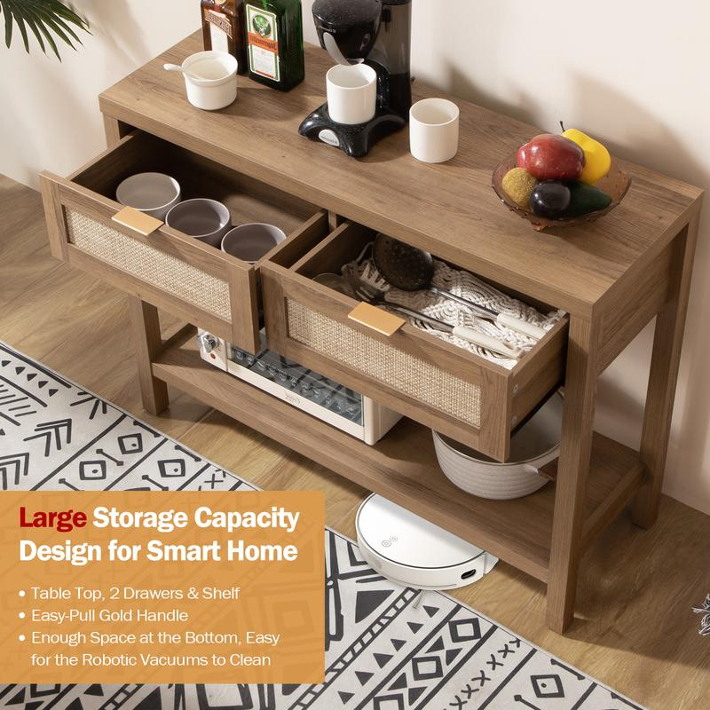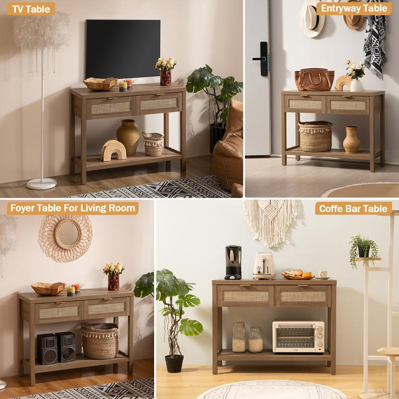 【Modern Boho Console Table】- Designed with natural wood grain and rattan-decorated drawers, has a clear texture. The classic design blends well with any style of decor, adding a sense of elegance to your room.