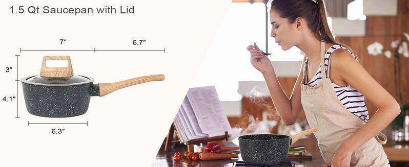 • Easy to Clean: Simplify your kitchen routine with our nonstick cooking set, designed for easy cleaning and maintenance. Simply wipe with a paper towel or rinse with water to reduce time and water waste.