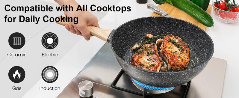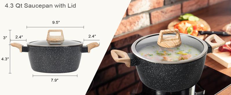 • Compatible with All Stovetops: From gas to electric and induction, non stick cookware set are designed to work flawlessly on any cooktop.
